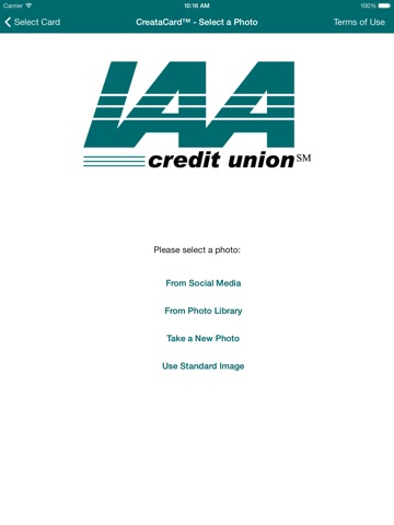 Personalize your Visa® Debit card from your iPhone, iPod, and iPad using CreataCard Mobile from IAA Credit Union.