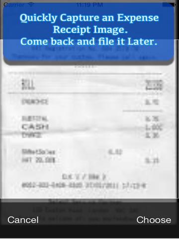 Quickly Capture a picture of a receipt using Quick-Snap and come back to the app to file it later when you have time.