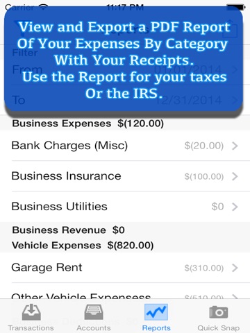Note: iAccountant is free to try, but to capture more than 20 expenses, you must upgrade to the paid version via In App Purchase
