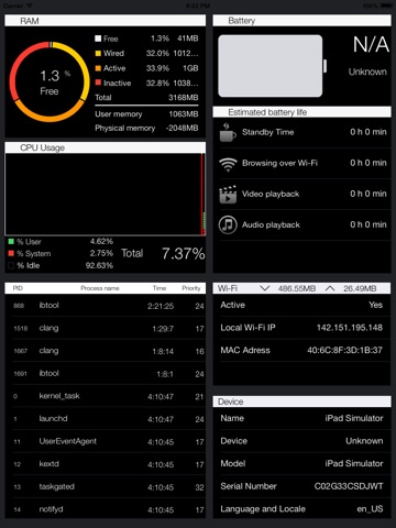 Die Auslastung des Speichers und die prozentuale Angabe sind falsch (active, inactive Memory) Funktioniert nicht auf iPad