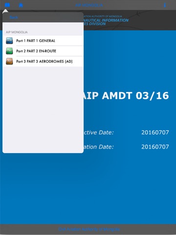 AIP of Mongolia is a application for the iPad specifically designed to access the electronic Aeronautical Information Publication of Mongolia made available on the web.