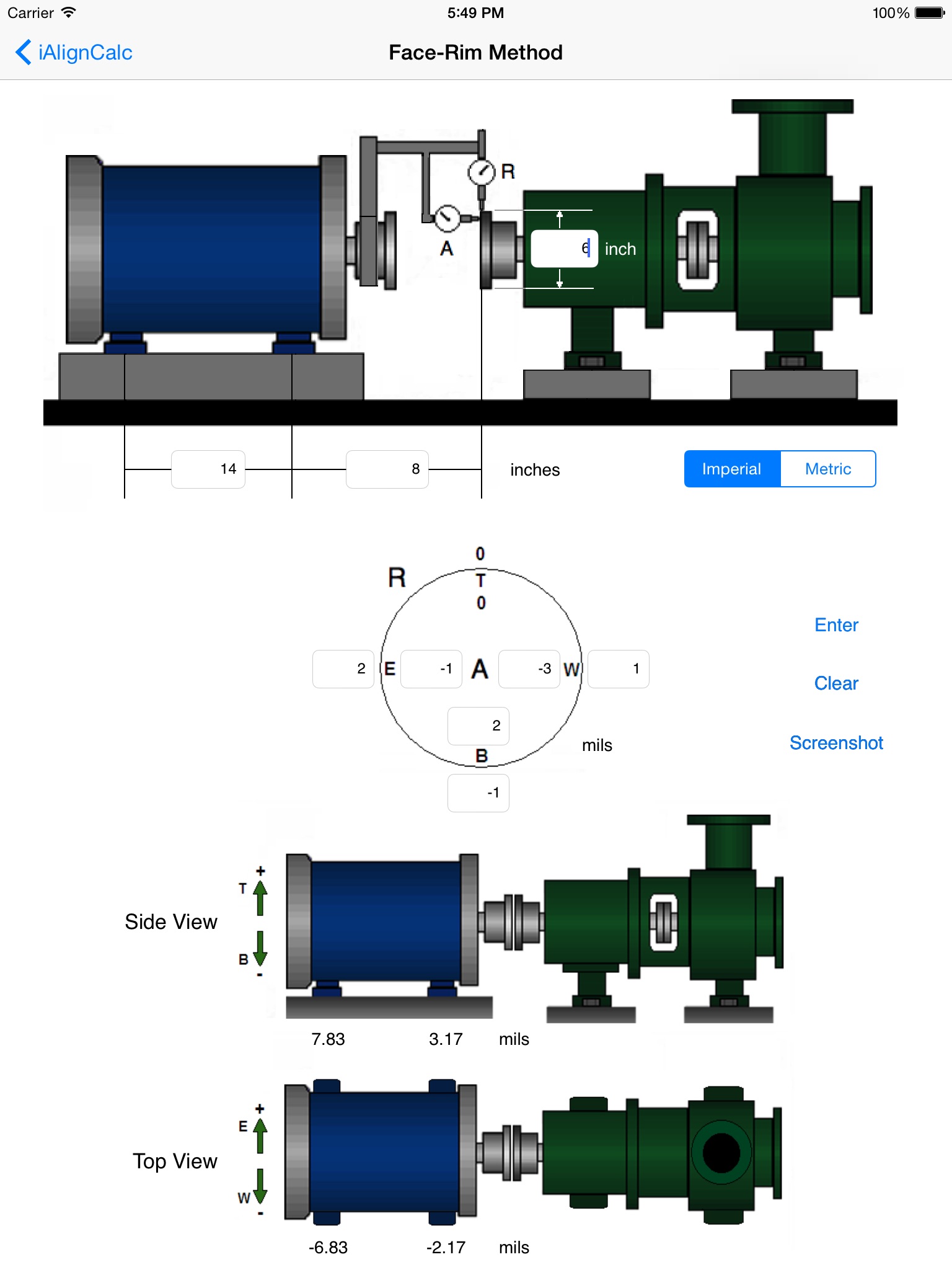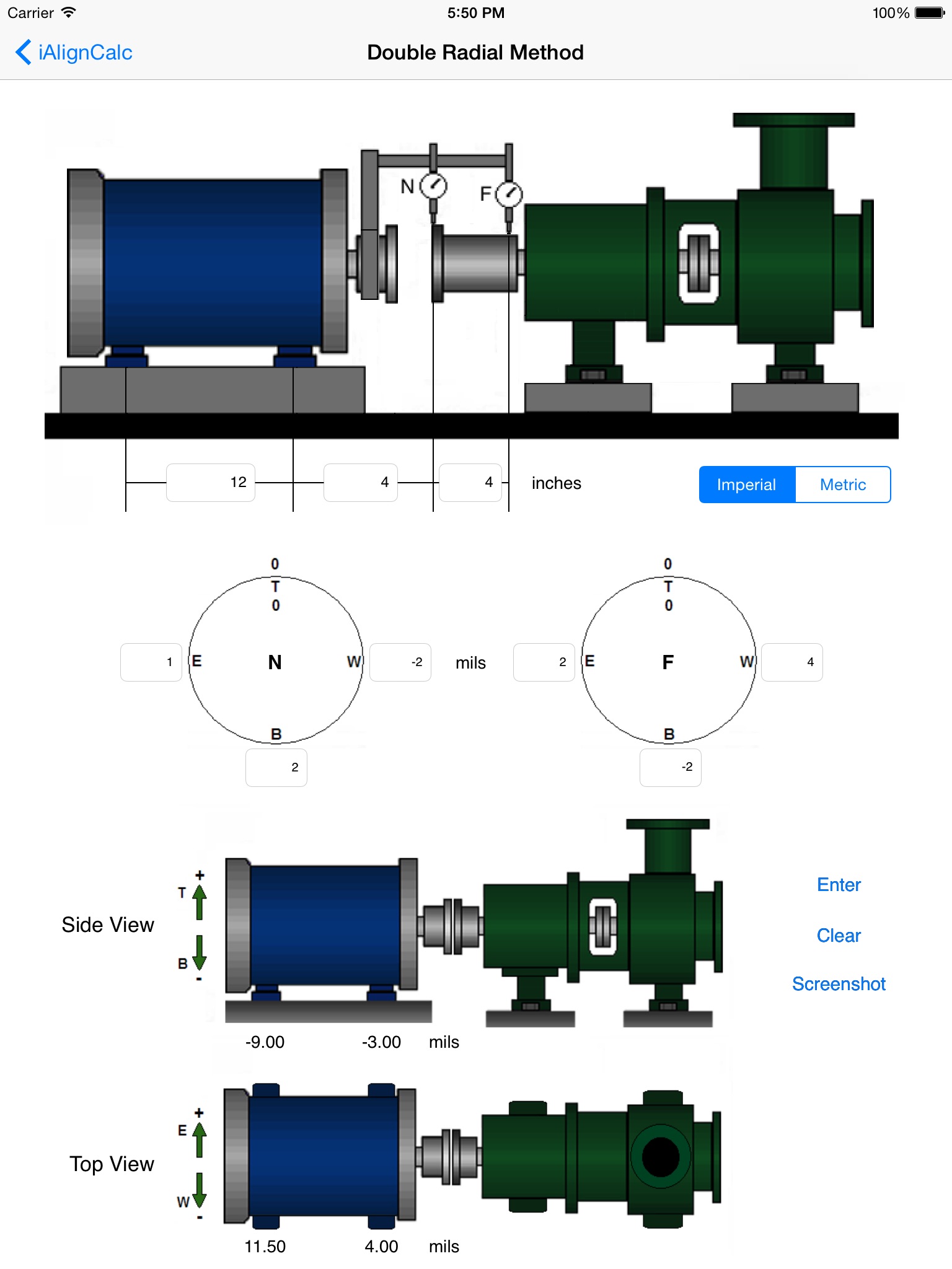 - Calculates machine shaft alignment corrections using the two inverted dial method.