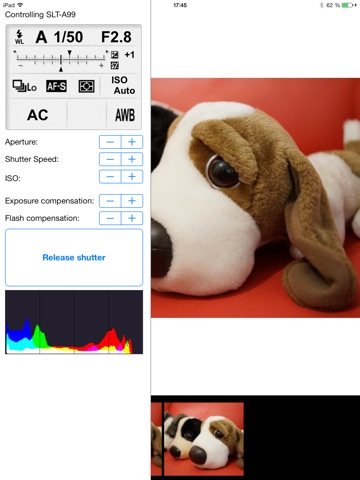 iAlpha Remote HD A99 is the shutter release, camera setting review and change application for Sony A99 SLT, ILCE-7 (A7) or ILCE-7R(A7R). You can control aperture, shutter speed, ISO, exposure compensation and flash compensation.