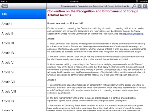 iArb is an app that brings together the key legal sources that relate to international arbitration in a free app available for iPhone and iPad. iArb contains (1) international treaties, (2) select institutional rules, and (3) select national laws on international arbitration. iArb attempts to include the most frequently referred-to sources, and plans to expand the content to include further sources in the future.