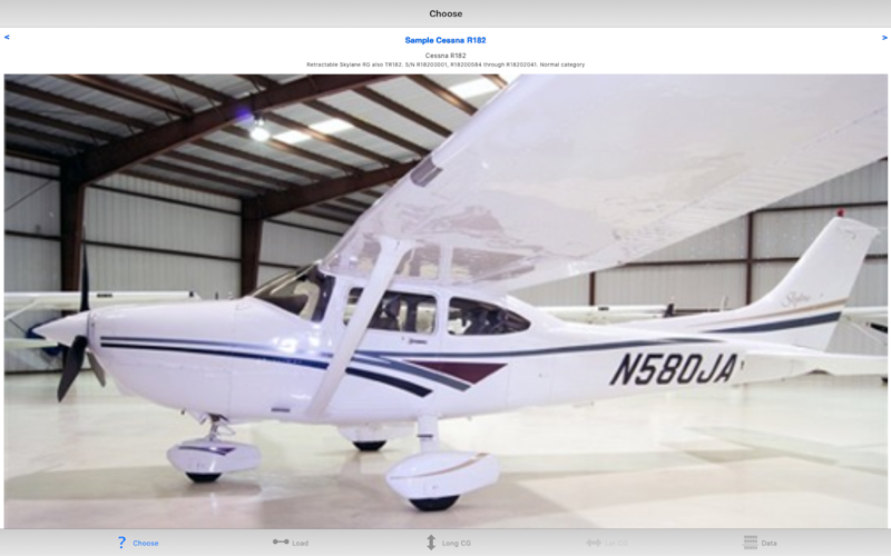 Configurable Name, BEW, longitudinal arms and photo for your own aircraft (from camera or photo roll where supported).