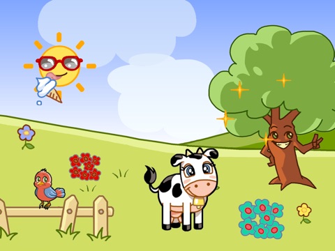 - The Cow: our sweet little main character wants to meet up with her friends to listen to some music together: your child can interact with a chorus of singing cows and many other fun characters.