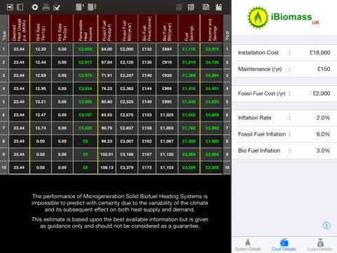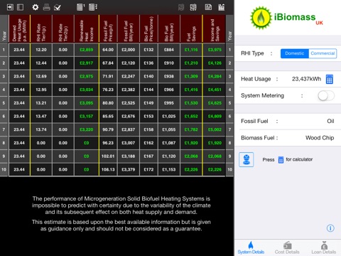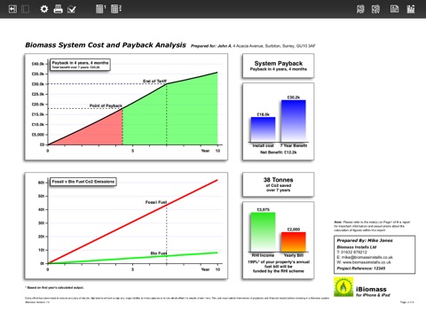 Use the app to demonstrate the Return On Investment (ROI) over the 7 years (or 20 years if a commercial installation) of the Renewable Heat Incentive (RHI).