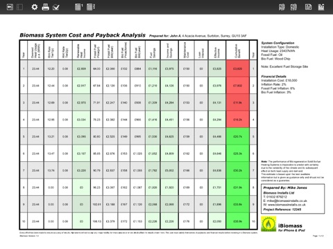 Print and share your reports for record purposes or demonstrate to others the savings and income a biomass system can produce.
