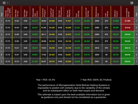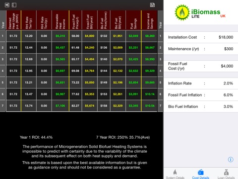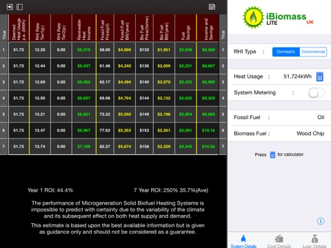 See iBiomassLite demonstrate the Return On Investment (ROI) over the 7 years (or 20 years if a commercial installation) of the Renewable Heat Incentive (RHI).