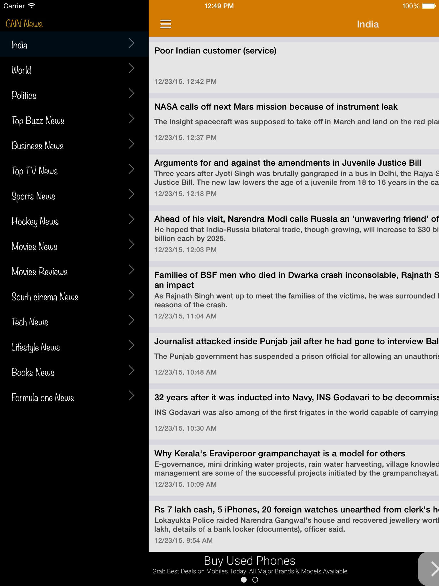 We have live RSS feeds coming from their official site, purpose of this app is to enable users to read news which they find interesting.