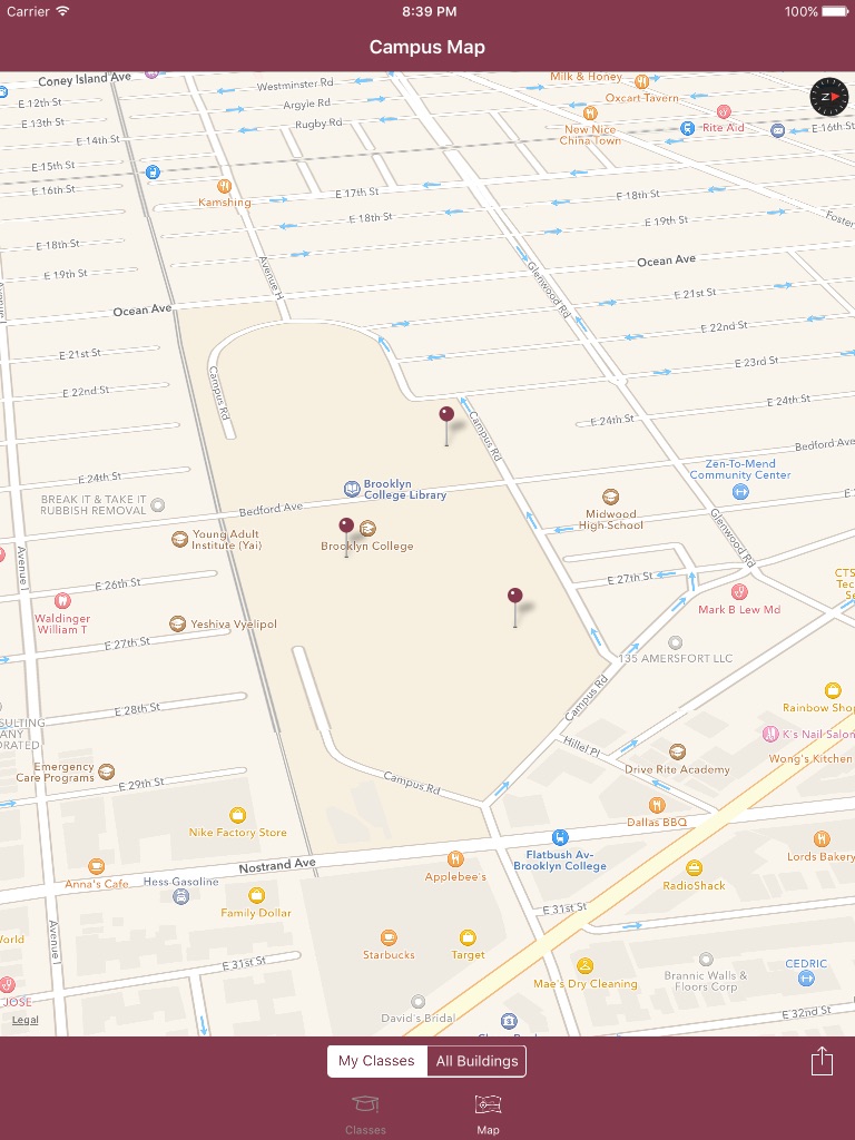 iBrooklyn helps you navigate campus by showing your classes on a campus map. Add your classes to the app and then you cans see them by filtering the campus map. It also lets you participate in student life by connecting you to WBCR, Brooklyn Colleges student radio. You can control playback with Control Center, or with a remote control on your headphones.