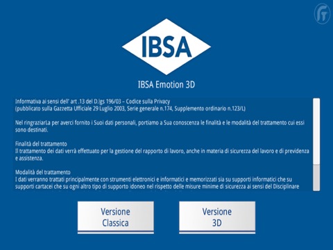 L’App presenta, grazie allimpiego di un visore per la Realtà Virtuale, una serie di video di carattere emozionale e di presentazione dei prodotti IBSA. I filmati emozionali sono di libera visione, mentre i filmati di presentazione dei prodotti sono ad uso esclusivo degli operatori sanitari; per questo motivo è necessario confermare l’appartenenza a tale categoria per poterli visionare. Per l’utilizzo in modalità "Realtà Virtuale", dopo aver montato il visore sarà sufficiente inserire il proprio smartphone, lanciare lApp e selezionare la modalità "Versione 3D". Soffermandosi per qualche secondo con il puntatore oculare sui pulsanti dellinterfaccia sarà possibile selezionare i video da riprodurre.