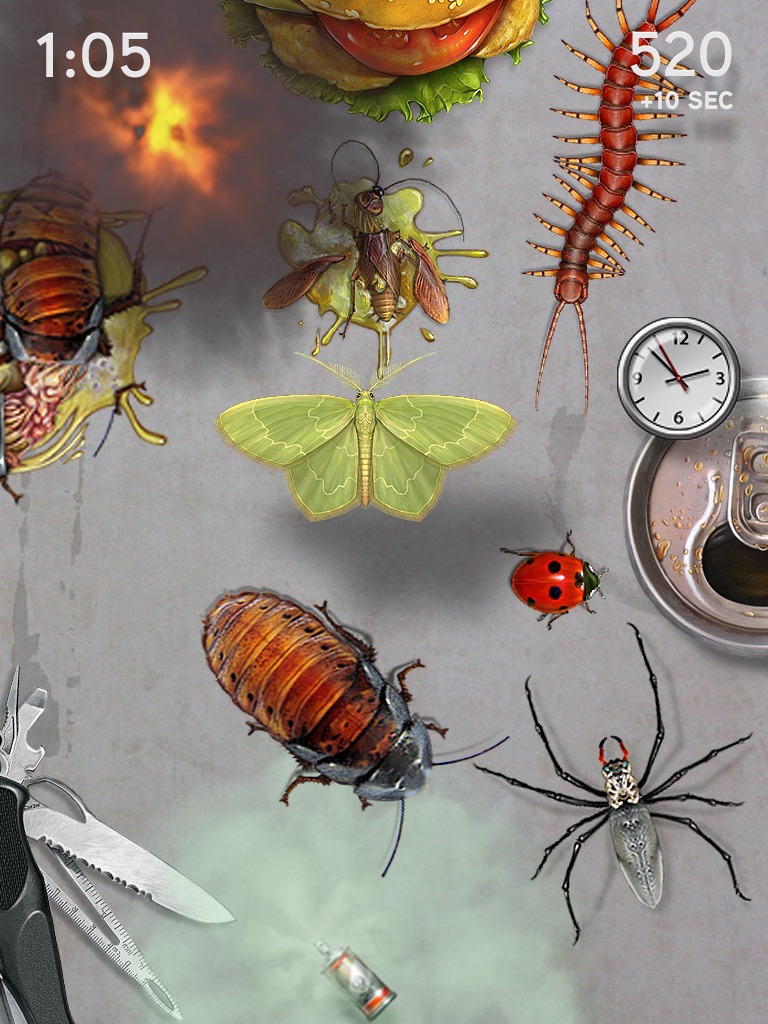 Hold your iPad or iPhone and start the war against these creatures now! Tap the screen to squash as many as you can before the time runs out.