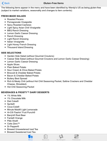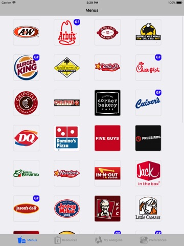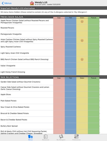 Save time and let this app do the work for you instead of searching fast food websites and allergy charts. All menus address the top 8 US allergens with separate gluten-free menus provided as available.