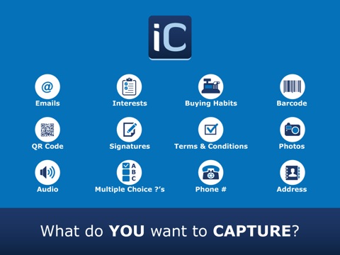 * SETUP * - Sign up for an iCapture account online and create a questionnaire with our quick and easy web-based admin. Upload your logo in seconds and proudly display your brand on the screen. Install on your tablet or smartphone.