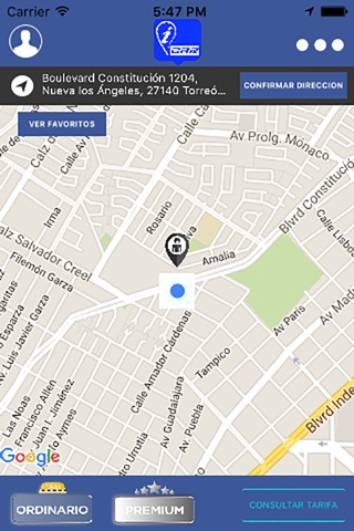 La aplicación es muy fácil de usar. Nuestro sistema detecta automáticamente tu posición o puedes presionar en el mapa en el punto exacto donde quieres que el vehículo te recoja. También tienes la opción de teclear tu dirección exacta.