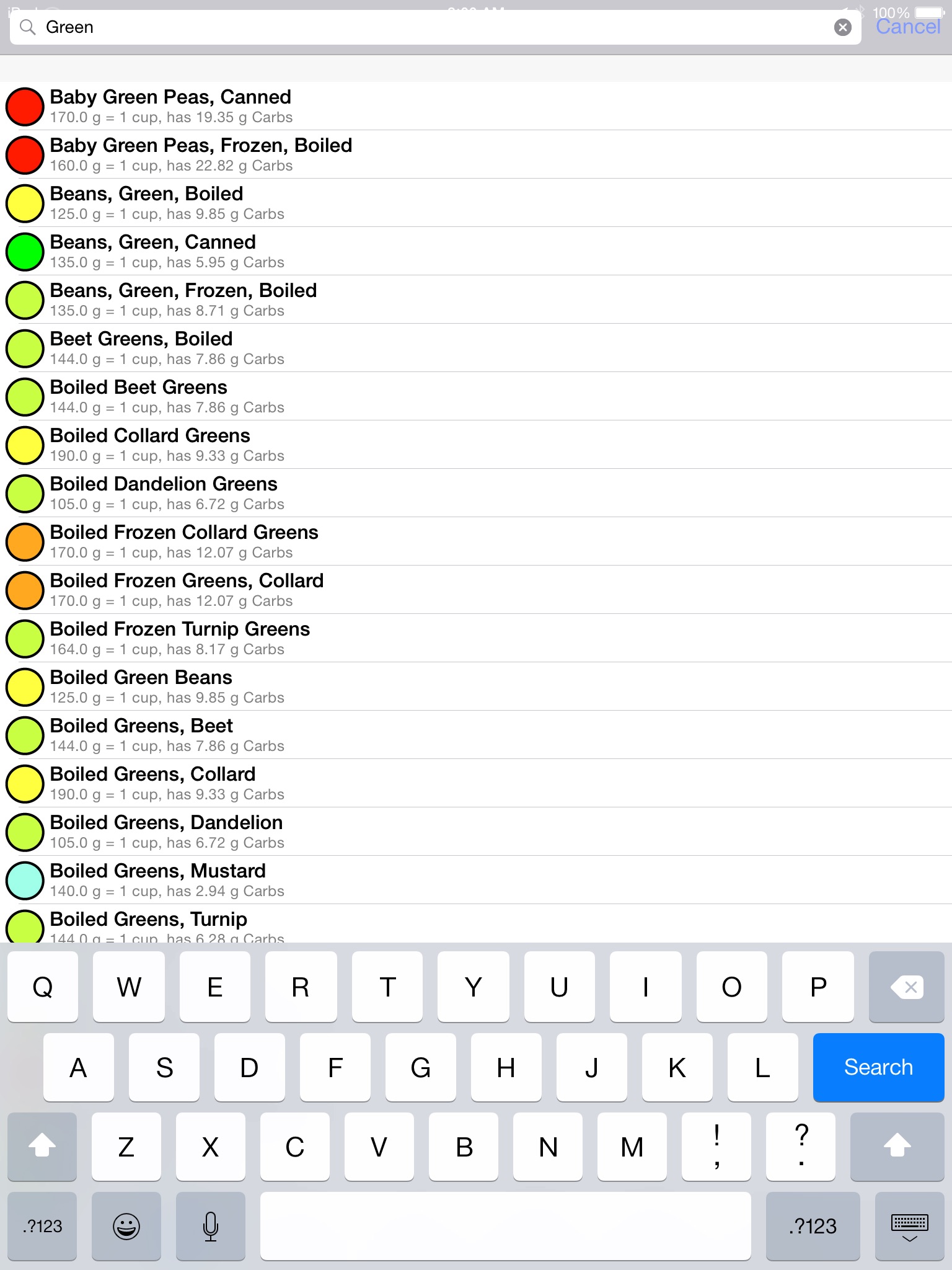 The iCarbs app provides information about foods and how they are rated for carbohydrate content. This is provided as a means to assist in deciding which foods to eat. If you are a bodybuilder, you probably want to have a high intake of carbohydrates, but on the other hand if you have diabetes you need to make sure you dont exceed your recommended daily amount of carbohydrates. The food servings are rated from EXTREMELY LOW in Carbohydrates all the way up to EXTREMELY HIGH. The following colors help readily identify which is which: