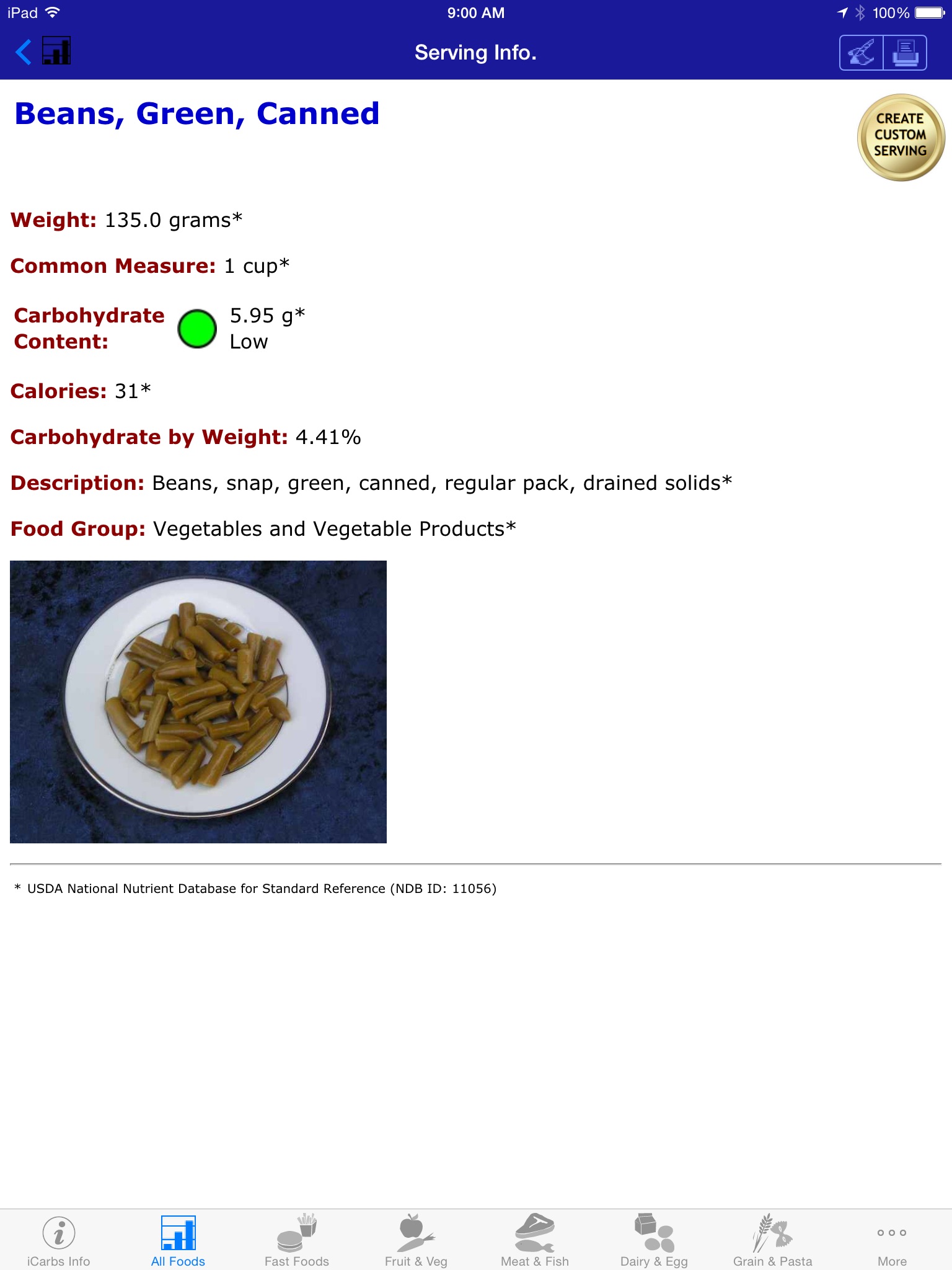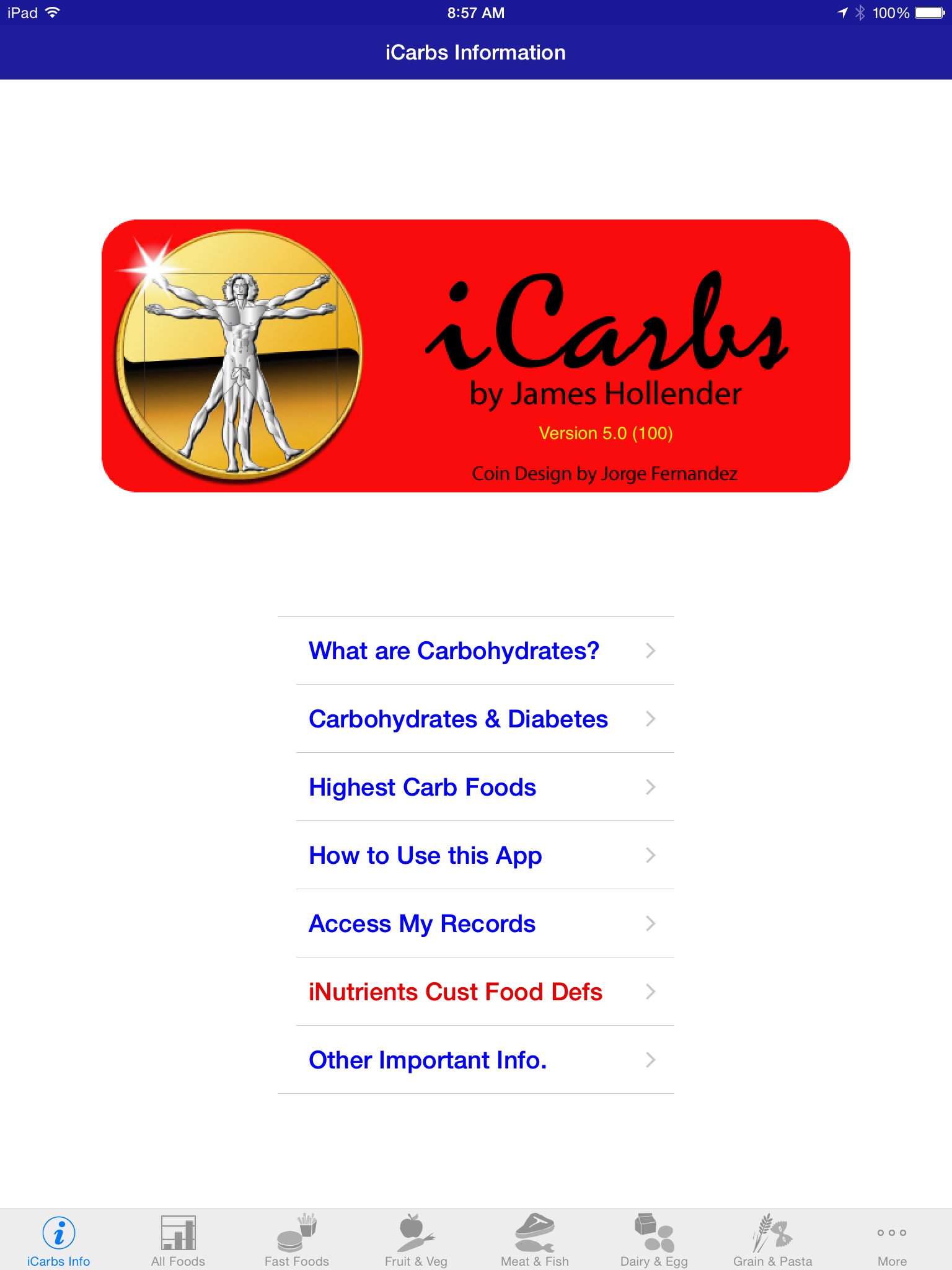 iCarbs is one of 10 iNutrient apps based on the USDA National Nutrient Database. The others include:
