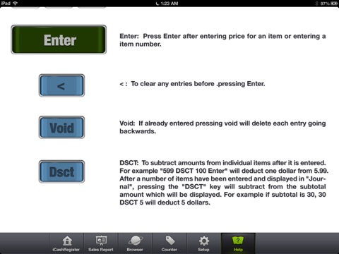 I-CashRegister 1.0 is a fully functional cash register on your I-Pad. This app is perfect for small businesses and shop owners. Download I-Register app on your I-Pad and start ringing transactions in style. This user friendly app requires little to no training to get started. I-CashRegister is packed with all the convenient functionalities of a cash register with the added benefit of being portable. I-CashRegister application provides Credit Card transaction feature using our affiliate company Authorize.Net(enabled with 3G service or WI-FI). With 4.2 IOS version it is possible to use another credit app along with iCashRegister by switcing between both apps.