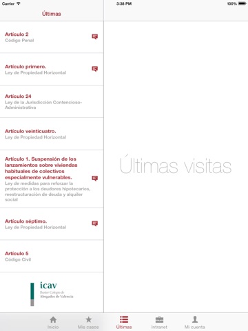 - Nube del colegiado: Guarda tus casos, notas y últimas visitas en la nube del ICAV para tenerlo todo disponible en cualquier dispositivo.