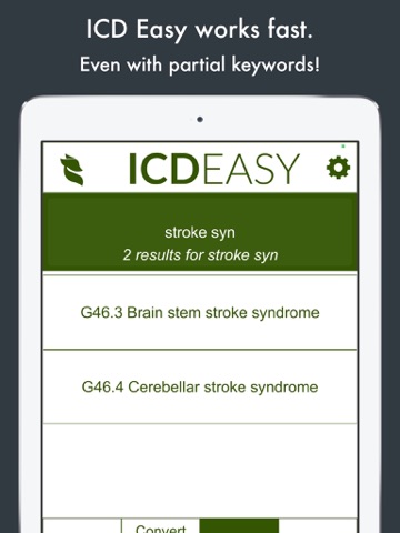 ICDEASY is the fastest way to find the new ICD 10 codes. This powerful App created by doctors is intuitive, simple, and saves time; it allows you to find and create all the ICD-10 codes that could potentially match your search.
