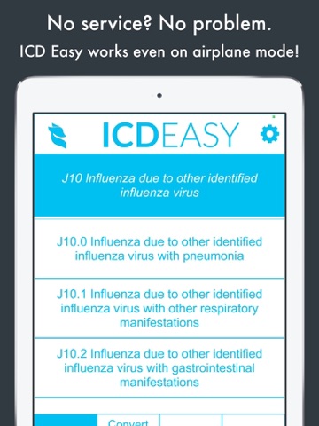 ICDEASY will give you all the potential codes (with descriptions) so you can choose the one that fits better your patients diagnosis. Searching for codes with ICDEASY is possible even when you dont have reception or WIFI (perfect for hospitals and restricted areas).
