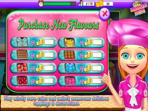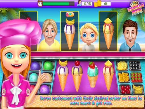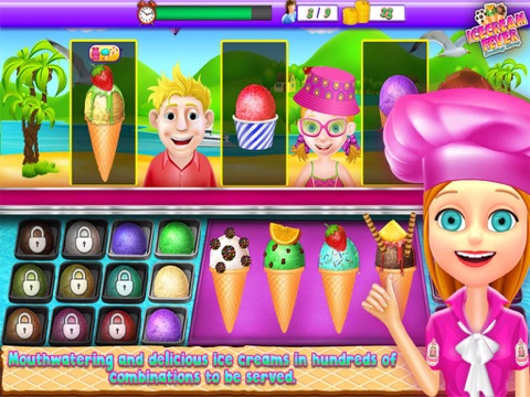 You will have cups & cones to put scopes in and various items to decorate the ice cream to make it look pretty and give it yummy & delicious taste. So, lets get ready to make ice cream and serve to customers in hundreds of different combinations.