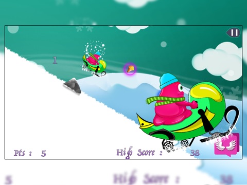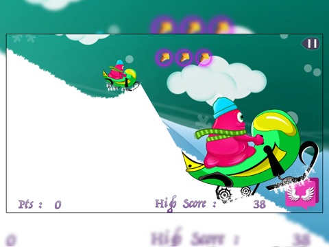 But no worries, your Snow Mobile is robust and the ice cream company has a surprise for every contestant ! Yes they give away ice cream cones !! Youll have to pick them all on your descent of the mountain, some are easier than other to reach, but they have all your favorite flavors, so its worth the risk ! Try to pick up as many as you can, youll even be able to reach new high score since each race score is registred !