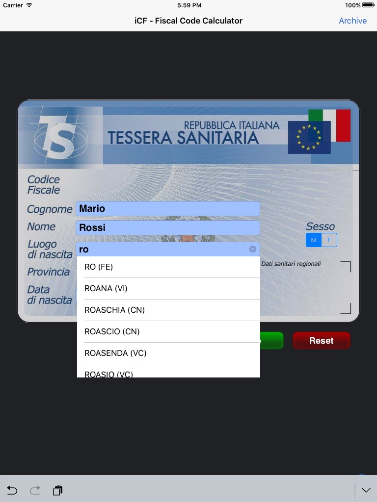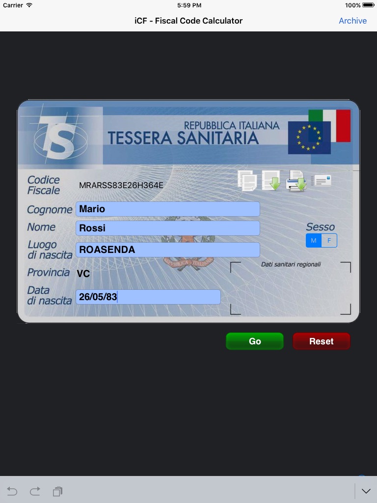 Thanks to iCF the fiscal code wont be a problem anymore!