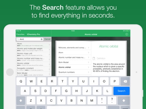 App fantastica, essenziale al ripasso e originale con linserimento dei quiz, ma manca una cosa fondamentale per unapp che parla di chimica. Una tavola periodica con annessa spiegazione sul suo utilizzo.