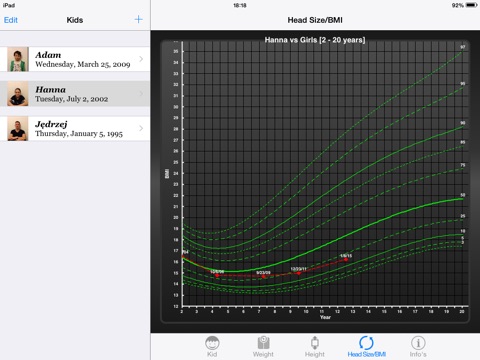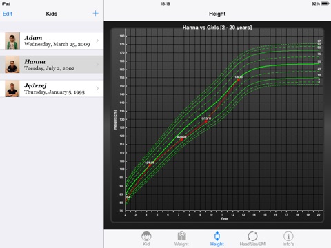 - collects heights, weights and head circumferences growth values to determine the corresponding percentiles;
