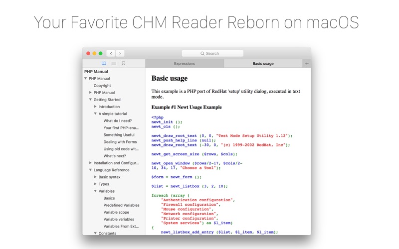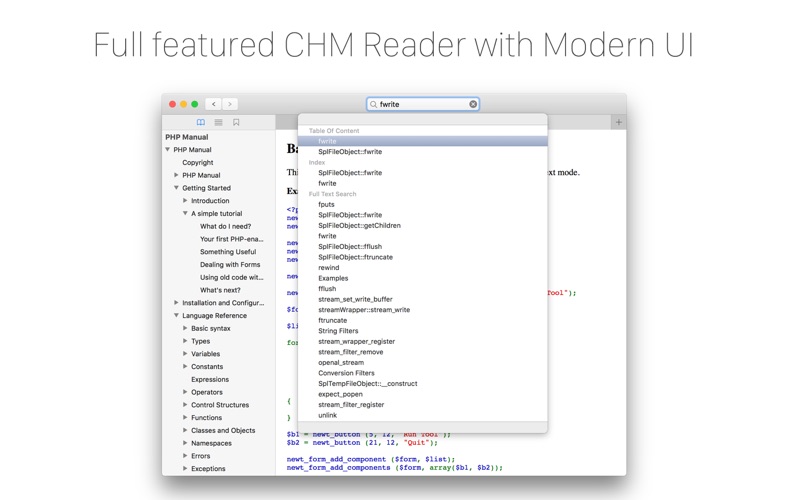 Full featured CHM file reader totally rewritten with modern UI on macOS.