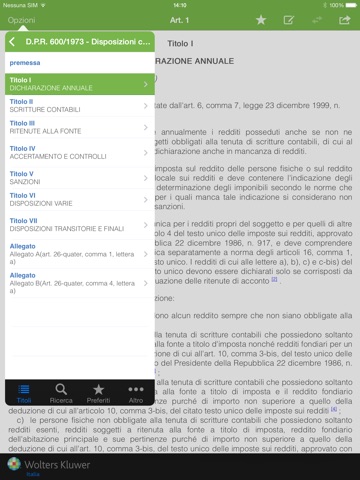 Inserire annotazioni personali, memorizzarlo tra i preferiti, inviarlo per e-mail, pulsanti di scorrimento veloce degli articoli, adattabilità della dimensione dei testi zoomando con le dita.