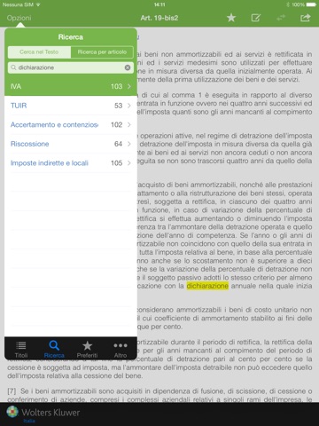 La ricerca opera su tutti i provvedimenti contenuti nellapplicazione. Le parole trovate all’interno dei singoli articoli, contenuti nella lista dei risultati, sono evidenziate.
