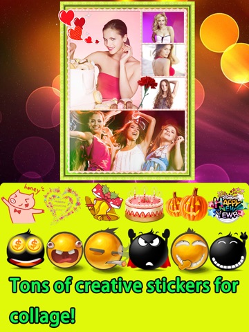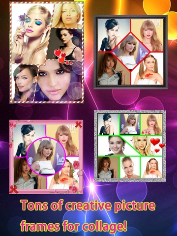 iCollage helps you quickly combine multiple sized photos into one beautifully framed picture & unique collage with caption in seconds, then share your masterpiece to Instagram, Facebook, Twitter and Flickr.