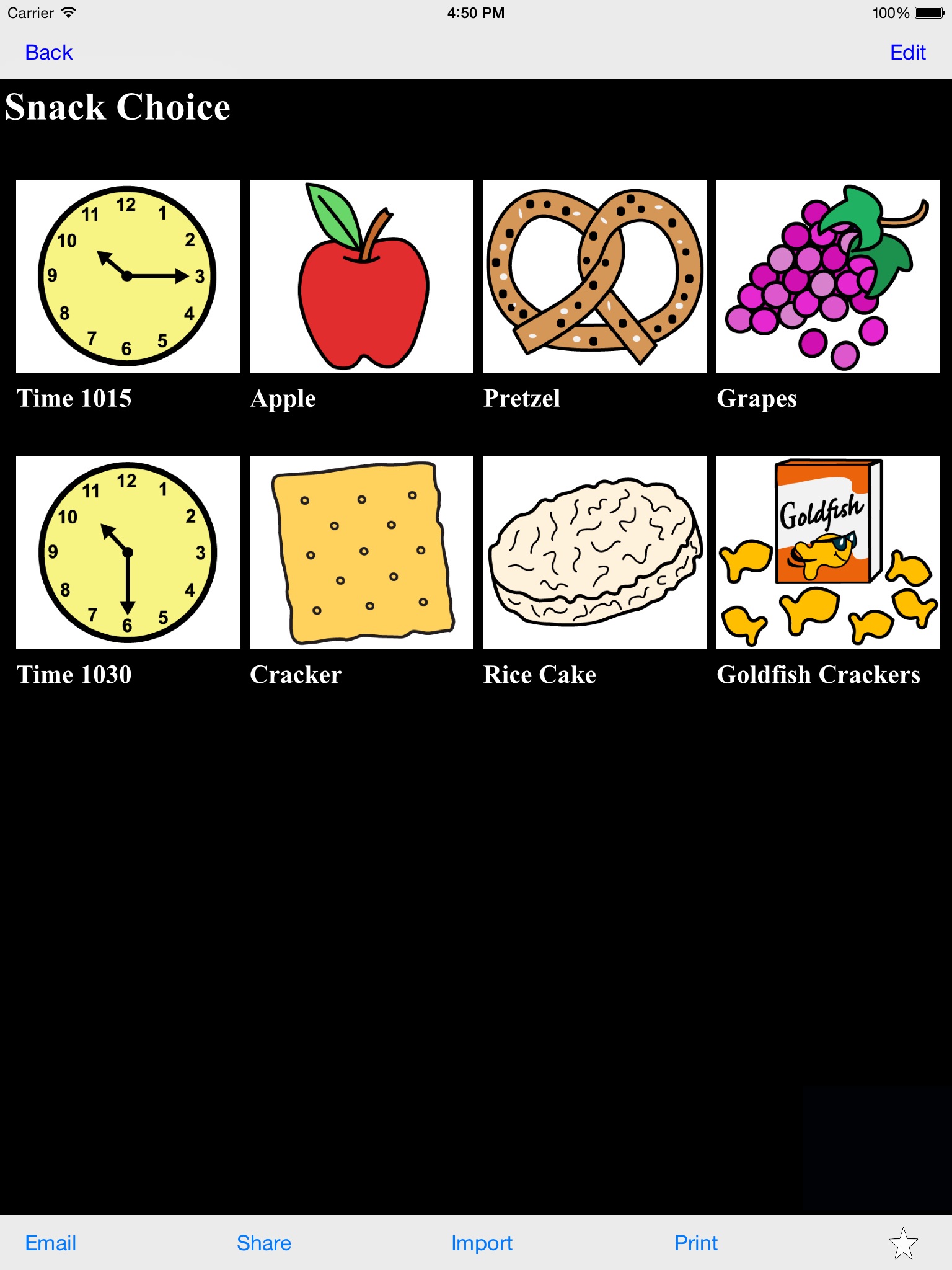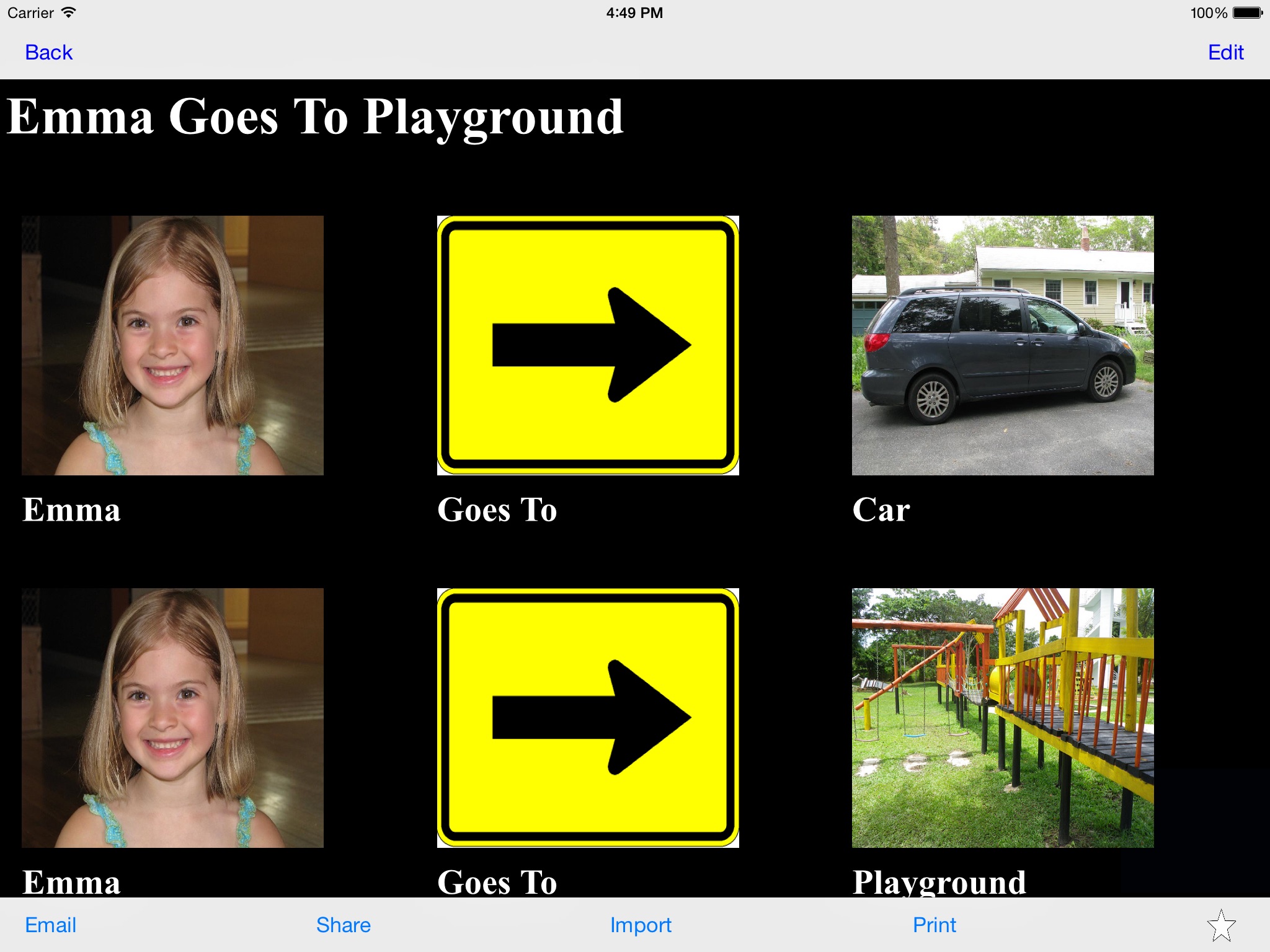 iCommunicate lets you design visual schedules, storyboards, communication boards, routines, flash cards, choice boards, speech cards, and more. It is customizable to your needs.