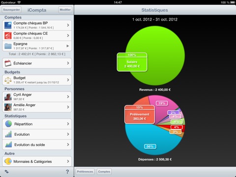 Jai 42 ans et je nai jamais fait mes comptes. Une espèce de réfractaire. Mais les temps changent et le besoin de canaliser lenergie argent se fait sentir... Alors je cherche une application qui me permet a chaque instant de quantifier et tracer ce que je dépense et je découvre iCompta 2. Cest une vraie petite merveille ! Et la synchronisation entre Mac iPhone et iPad fonctionne est épatante ! Bref merci au concepteur et chapeau ! Finalement faire ses comptes cest amusant !