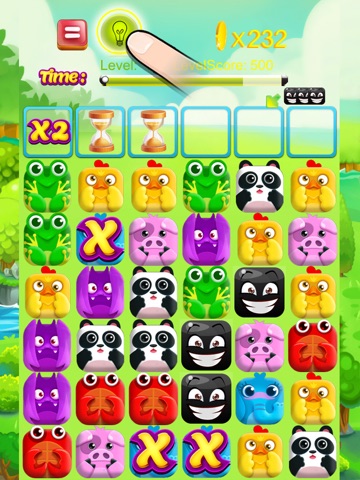 However, the difference between this game here that instead of searching for and arrange the adjacent diamond, you will use eye-catching icons animals and funny.