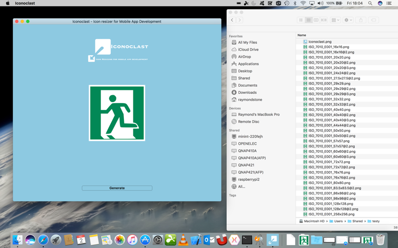 Iconoclast allows you to drag a base icon (1024x1024 ideally) to the window and then will generate a series of icon sizes required for app submissions.