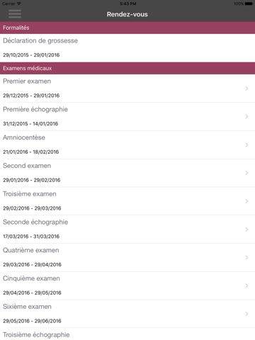 Les rendez-vous à prendre pour les consultations , les examens, les écographies obligatoires.
