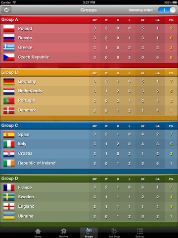 - User interface designed for fast access to all data (use official UEFA groups color and matches numeration)