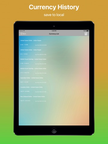 When you are traveling in a different country, most of the time your focus will be on converting the local currency back to your home currency. The built in calculator lets you focus on two selected currencies on one screen. The built in calculator remains on the screen at all times making data entry quick and easy.