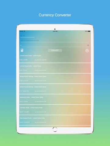 Convert every world currency with the Currency App . It offers live proprietary currency rates, charts, and even stores the last updated rates.