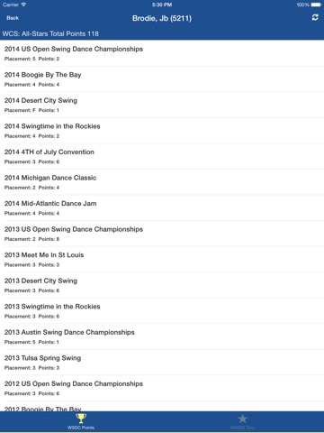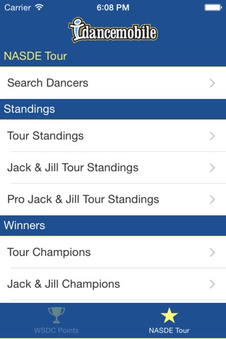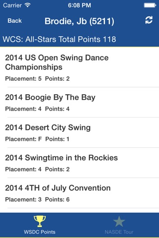 Welcome to the official mobile application for West Coast Swing competitors. Download now and stay up-to-date on your WSDC points and the NASDE tour.