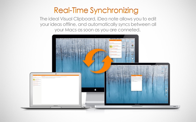 Whenever you are connected to the internet, iDea note keeps your notes synced across all enabled Macs, automatically. iDea note works offline as well, and will sync as soon as a network connection is established, for a secure and trouble-free experience.