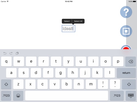 On Idea8 you have a huge virtual screen that spreads in all directions. Add your content (like text, images or gif animations) and show your items as you tell your story. The app records everything for you and allows you to share the resulting video file anywhere you want.