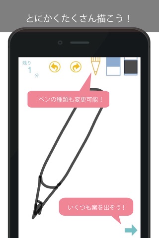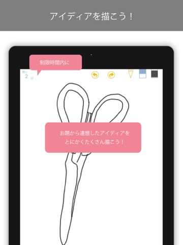「ひらめきスケッチ ideaDASH」はお題から連想した物の絵を制限時間内にとにかくたくさん描くアプリです。