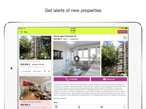 • Draw your area of interest on the map. Enter the idealista map and draw the limits of the search area with your finger. Once drawn, we will show you all the listings within the area that meet your requirements and you will be able to see the map of all the properties to compare them at a glance. Its that easy.