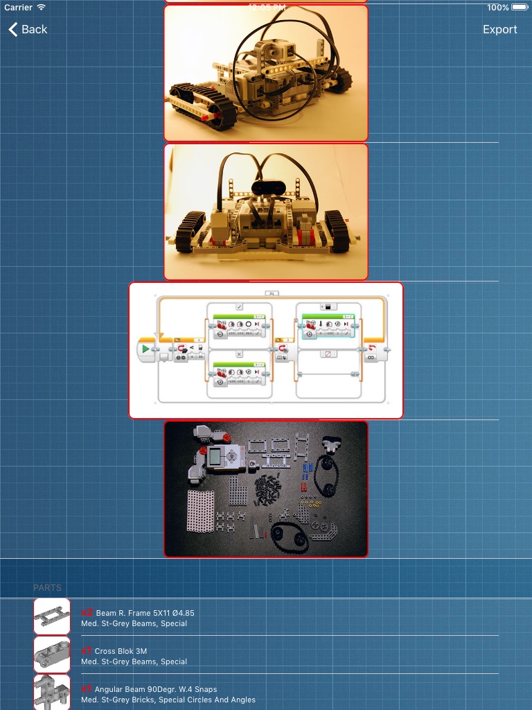 - The app also contains parts database for EV3 and NXT