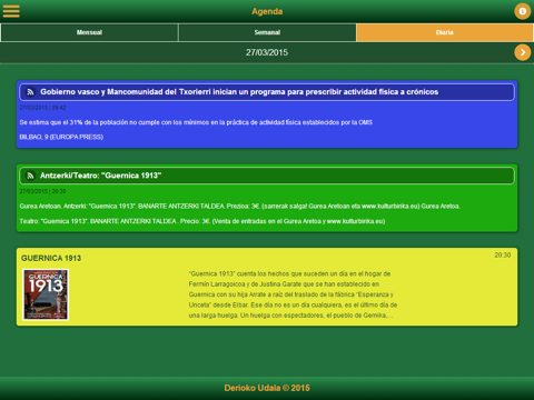 Podrás ver las noticias más relevantes de tu ayuntamiento, del departamento de cultura, así como los horarios y noticias más destacadas de las actividades y centros deportivos de Derio.